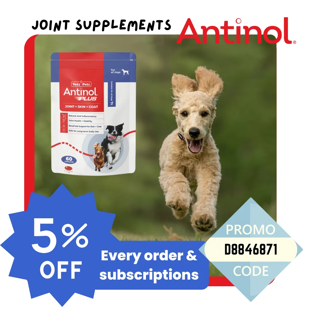 Antinol create a well-rounded joint supplement which also benefits the skin and coat. The supplement comes in a small, gel capsule that is easy to pop into food or treats daily.