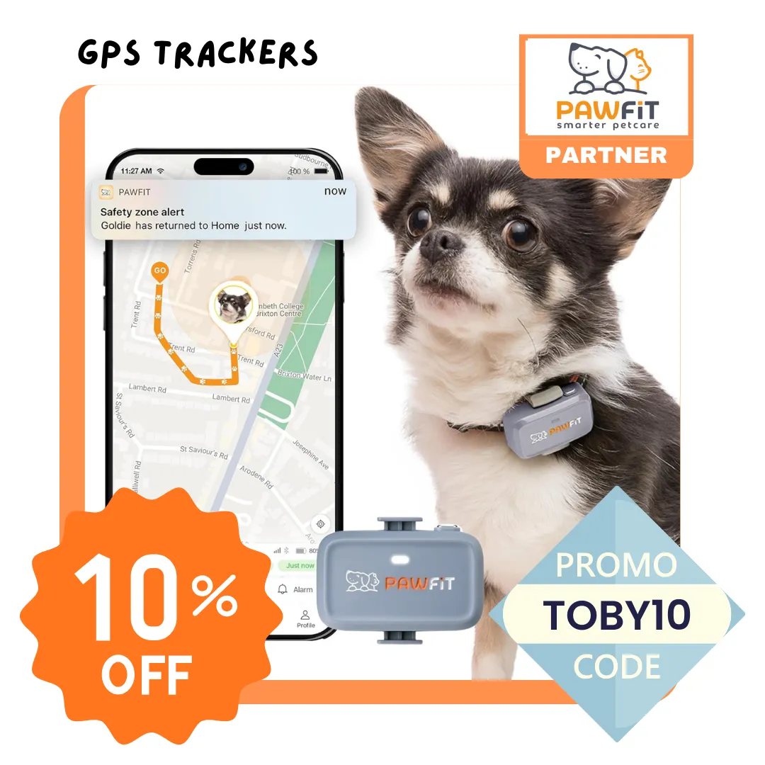GPS trackers allow you to track your dog's location in real time, with most offering location updates every few seconds. There are a few notable brands, however my recommendation (especially for anyone with a smaller dog) is Pawfit! They're making the smallest and lightest tracker on the market, which I have tried and tested on my own Chihuahua crosses and can confirm, it's tiny!